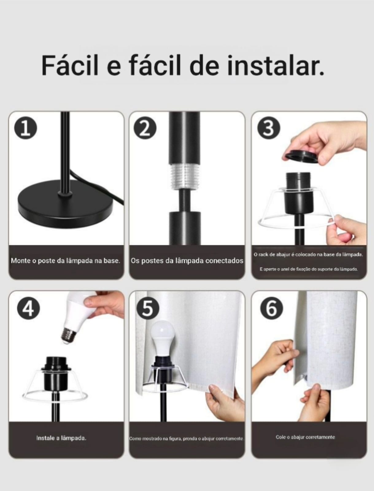 Instalação "Fácil e Fácil": Esqueça manuais complicados. Com um sistema intuitivo de 6 passos, você monta sua luminária rapidamente e sem a necessidade de ferramentas profissionais.
